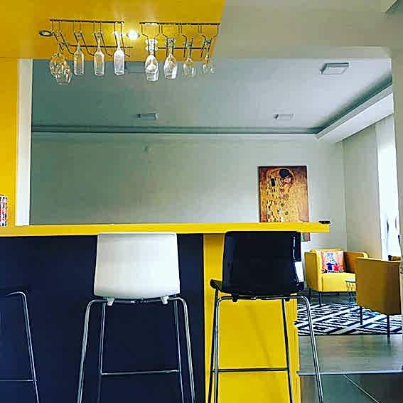 Keyif, beraberlik ve konforun ön planda olduğu, daha çok kullanılacak olan bahçe katında açık mutfak tercih ederek modern bir bar masa ile salonla mutfağı yumuşak bir geçişle ayırdık. Aynı zamanda fonksiyonel bir kullanım alanı oluşturduk. Genel olarak açık rengin hakim olduğu ortama, tercih ettiğimiz sarı renkle birlikte sıcaklık ve canlılık kattık.